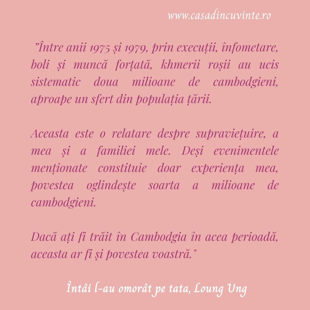 2 thoughts on “[7/44 Cambodgia] Recenzie: Întâi l-au omorât pe tata. Povestea unei fetițe din Cambodgia – Loung Ung